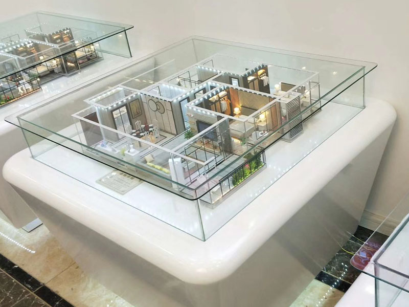 沙盘模型公司,制作户型展示沙盘模型以实体沙盘为基础,结合现代科技手段,精准地还原了不同户型的空间布局和细部设计。从客厅、卧室到厨房、卫生间,每一个空间都经过精心制作和细致呈现,使得整个模型仿佛是一个真实的家。